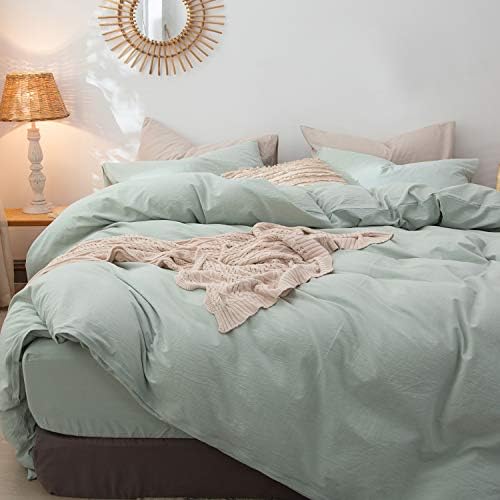 Amazon Com Moomee Bedding Duvet Cover Set 100 Washed Cotton Linen Like Textured Breathable Durable Soft Comfy Sage Green Twin Home Kitchen